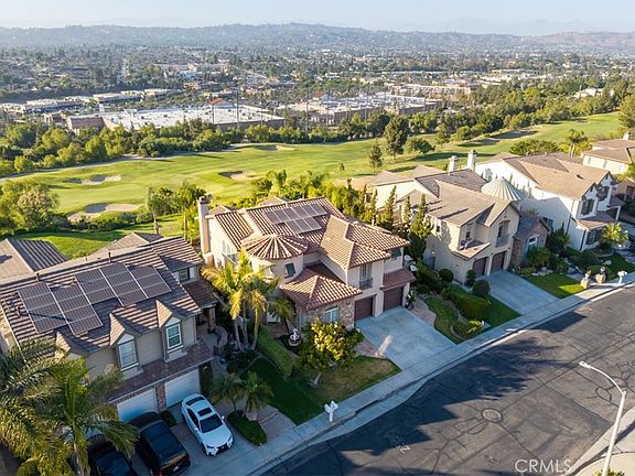 Graceful Living in a Premier Golf Course Setting! Set against the backdrop of the idyllic Westridge golf course and sheltered within its community gates, immerse yourself and loved ones in a private and peaceful neighborhood. A Mediterranean classic design with its stately turret and stonework frames the front facade like a piece of art. Make your way inside through the arched door and discover rich hickory engineered wood floors gracing main living spaces and every room.Refreshed ceilings and walls reflects natural lighting enhancing every space. The appointed living and dining room, set the stage to relax as well as to gather and entertain.A grand sweeping spiral staircase, a stunning architectural centerpiece against lofty ceilings connects the home’s second level.The open concept kitchen with quartz countertops flows into the family room, all overlooking a simple backyard with alternating flagstone and concrete showcasing expansive views of the golf course extending to sparkling city lights and beyond. The expansive kitchen is the heart of the home with a generous island with bar seating. An abundance of cabinetry, extended counter space and walk in pantry allow for organization and storage. Return to the main living area and proceed to wide open corridor via stairway leading to a blissful primary suite and remodeled primary bathroom anchored by a free-standing tub. The primary bedroom offers a serene retreat with a direct access to a balcony with unobstructed golf course views allowing comfort & scenic beauty right from your own suite. Indulge in the luxurious primary bathroom designed as a haven for calm and a space to unwind. Three en-suite bedrooms, each with its own private and remodeled bathrooms offer space and privacy for family and guests. All bedrooms feature custom-built closet cabinets and drawers, designed for optimal organization. Surely not to miss, is a main level bedroom that abuts to a full bathroom. Proceed to the backyard and a built-in barbecue area with extended serving counter lends space for outdoor hosting and family gathering. Bask in open spaces and take in breathtaking views. An abundance of fruit bearing trees line the side yard. Paid-in-full solar panels provide sustainable living and monthly energy savings. The 3rd car parking space has been enclosed. Newer tankless water heater and AC condenser has been updated. From it’s refined interior to its picturesque surroundings, live beautifully in comfort, peace and grace.