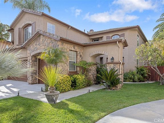 Welcome to this stunning 4-bedroom pool home, tucked away at the end of a private, tree-lined cul-de-sac on a spacious, oversized lot. This beautifully upgraded home is an entertainer’s dream, featuring a sparkling pool and breathtaking mountain views, offering both privacy and tranquility. Step inside and be greeted by the warmth of hardwood floors in the living and formal dining rooms. A full bedroom and bath are conveniently located on the first floor, perfect for guests or extended family. The open and airy floor plan invites natural light throughout, providing a perfect blend of comfort, space, and privacy. The upgraded kitchen is a chef’s delight, with timeless white quartz countertops, a subway glass tile backsplash, and stainless steel appliances including a farmhouse sink and Viking double oven. It seamlessly flows into the family room and formal dining area, making it ideal for entertaining. The cozy family room features a beautiful fireplace with a quartz surround and a wooden mantle, creating a welcoming atmosphere. From here, step into the serene backyard, where you’ll enjoy the peaceful mountain views. Upstairs, you’ll find three spacious bedrooms, including a large primary suite that offers its own private retreat with a built in desk and wardrobe. The suite is complete with a fireplace and gorgeous windows to take in the stunning mountain views. The ensuite bath boasts dual sinks, a soaking tub, a walk-in shower, and an expansive walk-in closet. The private backyard is a true oasis, perfect for hosting summer gatherings or relaxing in peace. Enjoy the sparkling pool, a generous patio area, built-in BBQ, lush grass for play, and a gated side yard with a shed offering ample storage. The home also features a 3-car garage with direct access to the spacious laundry room, which includes a sink, countertops, and plenty of storage space. This home combines luxury, comfort, and practicality, making it the perfect place to call home. Located near shopping, dining, and schools, with easy access to the 14 freeway, it offers both convenience and serenity. With low HOA fees and no Mello Roos, this is a home you’ll treasure for years to come!