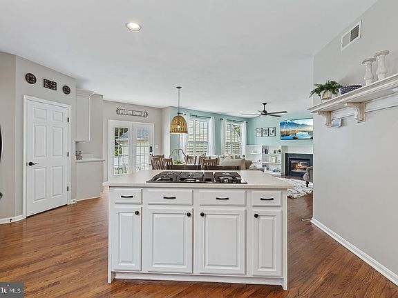 Gas fireplaceShelving for storageBreakfast roomFully fenced rear yardWhite picket fencesGranite countertopsLarge slate patio