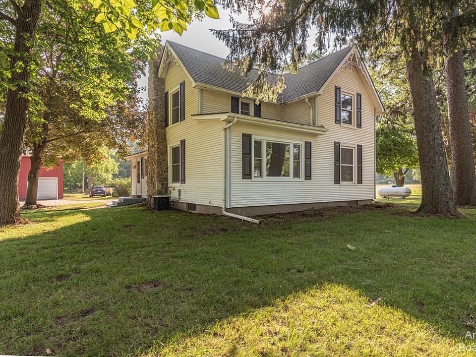 Location! Location! Location! Move in ready! With a peaceful setting of mature shade trees and often gentle breezes, this recently renovated farm style home offers a new kitchen with new appliances, four bedrooms and two bathrooms.9.7 acres of country living with two creeks that flow into the Raisin River directly behind the property. Pond potential. Lots of wildlife, beautiful sunrises. Pick apples from your Northern Spy tree, or plant that garden of your dreams. A great place to raise a family.All within walking distance of town, approximately 300 ft. to blacktop. Recent updates include: New septic system, newer windows, LED motion sensor lights, new kitchen with new appliances, new furnace.