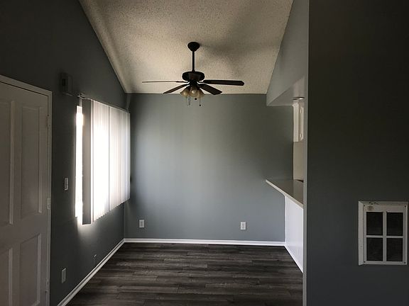 Upstairs Unit, overlooking courtyard. Stylish vaulted ceilings, private balcony and ample natural light. Newly renovated to include updated vinyl floors, microwave, dishwasher, refrigerator, stove/oven. Heaters and ceiling fans installed.