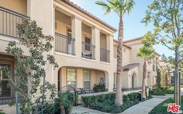 A very rare offering in the coveted Aldea Community of Porter Ranch. This is the first 3BR unit of this floorplan, the Plan 4, to come on the market for resale since the original buildout. The unit itself is less than two years old and has been impeccably kept with tasteful upgrades. Open floor layout with great flow and natural lighting. Premium grade stone tile flooring on the main level and custom upgraded carpet on the second level. The kitchen boasts stainless appliances, exquisite granite countertops with fulll backsplash, custom cabinetry, and a generous space for those who love to cook. Bedrooms are also generous in size, the master featuring a private spacious patio overlooking the community. There is a powder room on the main level, a full guest bathroom upstairs, along with a large master bath with double sinks and walk in closet. The community features arguably the best recreation area in Porter Ranch with three pools, BBQs, flatscreen TVs, and a kids playground.