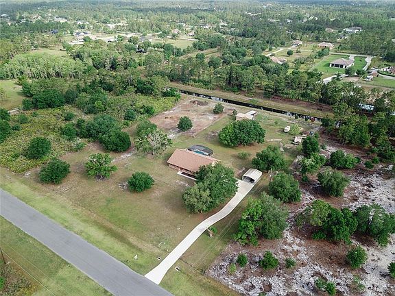 Welcome home! This is an IMMACULATELY MAINTAINED maintained 3-bedroom, 3-bathroom home located in the SOUGHT-AFTER community of Wedgefield. Upon arriving at the home, the first thing you'll notice is the home's LARGE ACREAGE featuring pens for livestock, an EXTRA detached garage and RV port, leaving PLENTY OF SPACE to make it your own! Take a step inside and you'll walk right into the GORGEOUS family room featuring WOOD FLOORING, WOOD WALL PANELS, VAULTED CEILINGS, and a WOOD-BURNING FIREPLACE making this space feel like your PERSONAL CABIN! Your new kitchen features RECESS LIGHTING, WOODEN CABINETS, and a seating area at the bar. Wanting to get the family together? No problem, take a step outside into your own private oasis! Your ENCLOSED lanai and POOL can accommodate and entertain all of your friends and family for those outdoor BBQ-style gatherings that you'll never forget! This home sits 35 minutes from the beach and only 20 minutes from all of the shopping your heart desires so you won't want to miss out! Welcome home!