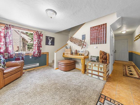 Surrounded by towering pinesSteep-pitched rooflineWood stoveNatural wood accentsVaulted ceilings