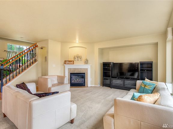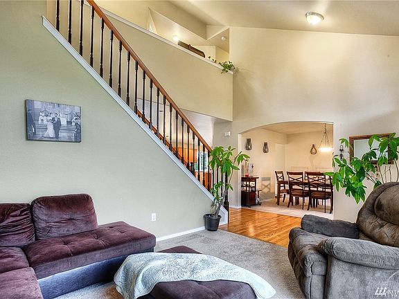 Large home in the gated Buttes neighborhood. This home has 5 bedrooms upstairs & a main floor bonus room that sits next to a full bath & double door closet. Perfect for guests. Home is equipped w/ AC, sport court & fresh new exterior paint. There's is also a nook under the steps for a mini office. Massive deck in back yard is perfect for entertaining. This home sits on the rim of the w/ no neighbor behind you & overlooks the Orting valley.
