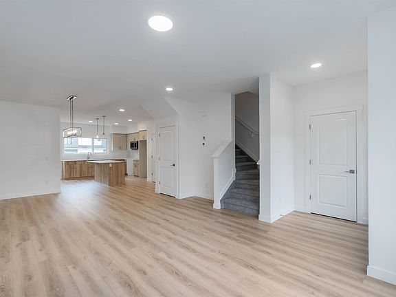 Discover the Sansa II Model—where refined living meets thoughtful design. Step into the welcoming foyer with a convenient coat closet, leading to a sunlit great room and open dining area. The rear L-shaped kitchen maximizes space and features quartz counters, an over-the-range microwave, Silgranit sink with window view, and ample storage with upgraded Thermofoil cabinets, soft-close doors/drawers, and a pantry. A discreetly located half bath near the rear entry opens to a spacious yard and parking pad, with an optional two-car garage. Upstairs offers an airy loft, laundry area, and a bright primary suite with walk-in closet and 4-piece ensuite with stand-up shower. Two more bedrooms with ample closets and a main 3-piece bath complete the floor. Enjoy 9’ ceilings on the main and basement levels, a separate side entrance, rough-in basement package, and brushed nickel fixtures—all part of the new Sterling Signature Specification.