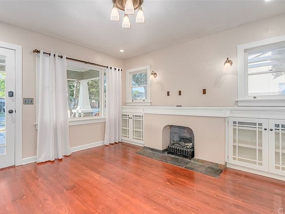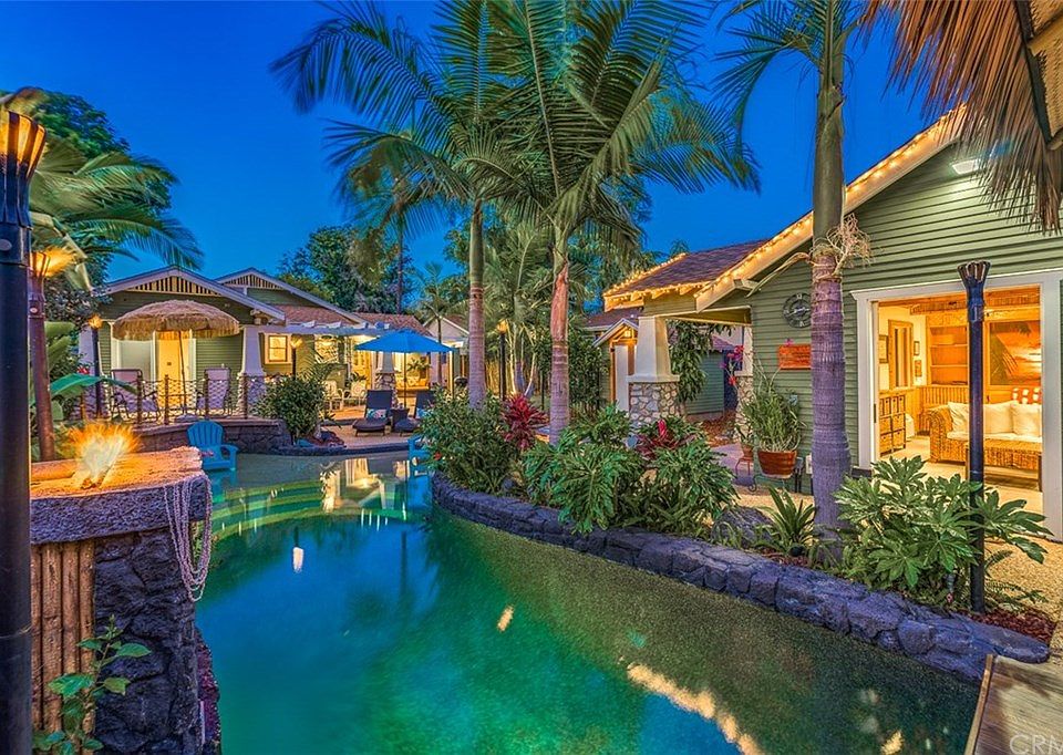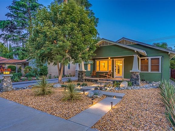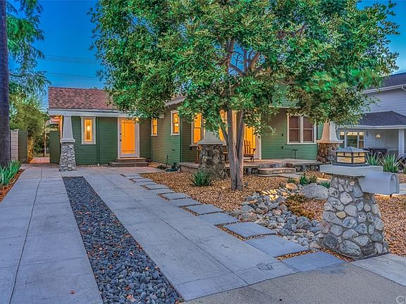 OLD TOWN LA VERNE CRAFTSMAN HOME WITH A DETACHED STUDIO & TROPICAL POOL BACKYARD. Beautiful drought tolerant front landscape w/rock, plants, mature tree & a concrete/river rock driveway. Cozy front porch w/glass entry door opens to a family rm w/picture window, custom lighting, built-ins, an electric fireplace & refinished hardwood floors running through most living areas & bdrms. Dining rm w/original built-ins, chandelier leading to an office w/glass french doors & to kitchen. Office w/private front entry & windows to side & backyards. Updated kitchen w/granite counters, tiled floors, white appliances, utility rm w/refrigerator & laundry plus a window overlooking backyard. Three bdrms, one w/sliders to a covered deck in backyard. Remodeled bath w/separate tub & walk-in shower. Studio is tropical theme (unpermitted, was garage) w/tiled floors, bamboo accenting, ceiling fans, a Murphy bed, built-ins, pocket doors & pocket windows, TV that descends from ceiling w/remote control, kitchenette w/gas cooktop, oven, microwave, fridge & custom cabinets & granite counters. Custom bath w/granite counter, bowl sink, stone & tiled shower w/rain head. Backyard features a pebble finished pool w/sand colored baja deck, blue colored deep end, fire & water feature, half bath, pebble/stone/concrete decking w/perimeter lighting, tropical landscaping, fruit trees, turf, exterior lighting, gas tiki torches, a shed, covered patios under rooftop, storage & a basement. Updated electrical & plumbing.