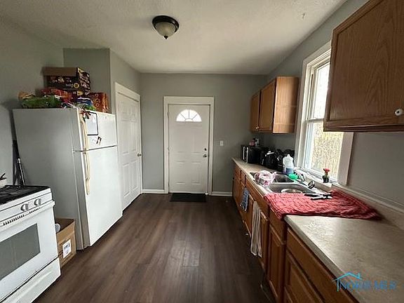 ?This 4-bedroom, 2-bathroom home offers 1,307 sq ft of living space in Toledo's DeVeaux neighborhood. Features include hardwood floors on the main level, carpeted upstairs bedrooms, and a spacious living room. The property also boasts a fenced backyard, and a full basement for added storage. No showings without an accepted offer.