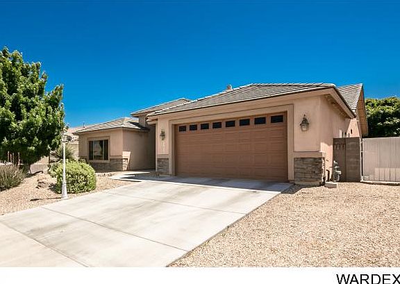 Beautiful 3 bedroom, 3 bath home with a den / office. Lots of space. Nice rear living room with fireplace, large dining area and open kitchen with lots of cabinets. Huge master bedroom with good sized walkin closet. Master bath has spa tub, seperate shower and dual sink vanity. Nice built in cabinets in the garage. Great back patio with a seperate BBQ area with gas plumbed to BBQ. Shade tree, grass and nice landscaping. View out the back of the Hualapai's. RV gate. Flood culvert on right side of house so you only have 1 neighbor. Truly a must see.