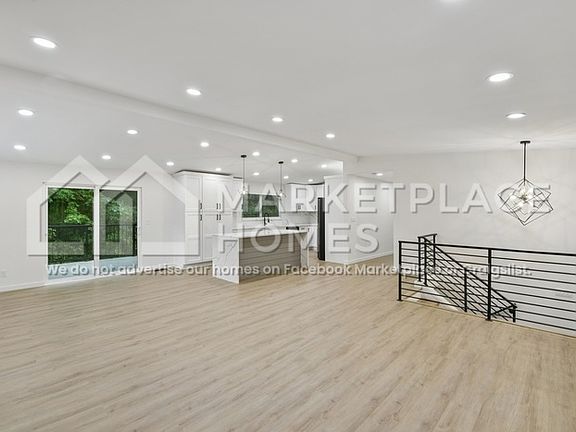Gravel patioElectric fireplaceRenovated kitchenSleek lvp flooringStunning kitchenSpacious islandSprawling rec space
