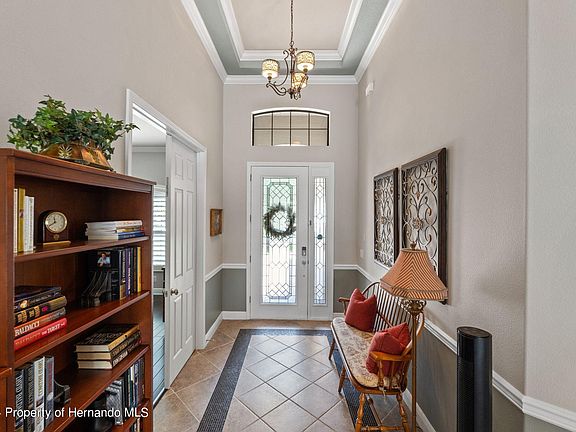 ACTIVE UNDER CONTRACT - ACCEPTING BACK UP OFFERS An Exceptional Opportunity in Terra Vista of Citrus Hills. Discover this unique POOL home in the serene Westford Villas of Terra Vista, tucked away on a quiet CUL-DE-SAC. This former model home, BUILT IN 2012, features 2 BEDROOM PLUS AN OFFICE and 2 full bathrooms in the main house, and a 1-BEDROOM CASITA with a spacious living area and full bathroom—ideal for hosting out-of-town guests. This meticulously maintained home is move-in ready, boasting fresh interior and exterior paint, a stylish TILE ROOF, crown molding, plantation shutters, 12-FOOT CEILINGS with 8-foot doors, 18-inch ceramic tile floors, and new luxury vinyl plank flooring throughout. The kitchen is a chef's dream, featuring upgraded 42-inch cabinets with decorative glass doors, granite countertops, a large center ISLAND, a cooktop with a hood, and a wall oven. The living area, with triple sliding glass doors, showcases the pool and lanai, and features a built-in entertainment center and a stylish tray ceiling. The den or home office features double doors plus built-in desks and cabinets. The primary bedroom suite is a retreat, offering his and hers closets with built-ins, and a SPA-LIKE BATHROOM with double sinks, a spacious walk-in shower, and a separate water closet. Step into paradise on the lanai, featuring freshly sealed brick paver decking and a spacious covered seating area perfect for outdoor living. Dive into the screen-enclosed saltwater pool, complete with a hassle-free in-floor cleaning system, a relaxing sun shelf, and eco-friendly solar heating—your personal oasis awaits! Right next to the lanai, you'll discover the charming casita, complete with a cozy living room, a handy kitchenette, a full bathroom, a built-in desk, and a hidden Murphy bed—perfect for making your guests feel right at home! Additional features include new landscaping, a new AC unit (2022), remote-controlled blackout shades in the bedrooms, a large indoor laundry room with cabinets, a whole-house water softener, a new pool pump, and two on-demand hot water heaters. The Villages of Citrus Hills offers four golf courses, tennis and pickleball courts, state-of-the-art fitness centers, a private spa, multiple dining options, and a vibrant social scene. Located in Central Florida's ''Nature Coast,'' residents enjoy proximity to the Gulf of Mexico, freshwater lakes, and charming towns like Crystal River, Inverness, Ocala, Tampa, and Orlando. Furniture and golf cart available for purchase.
