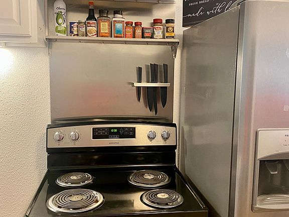 Floating shelvesPrivacy stockade fenceNew cabinetsNew washer and dryerNew dishwasherNew patioCovered pergola