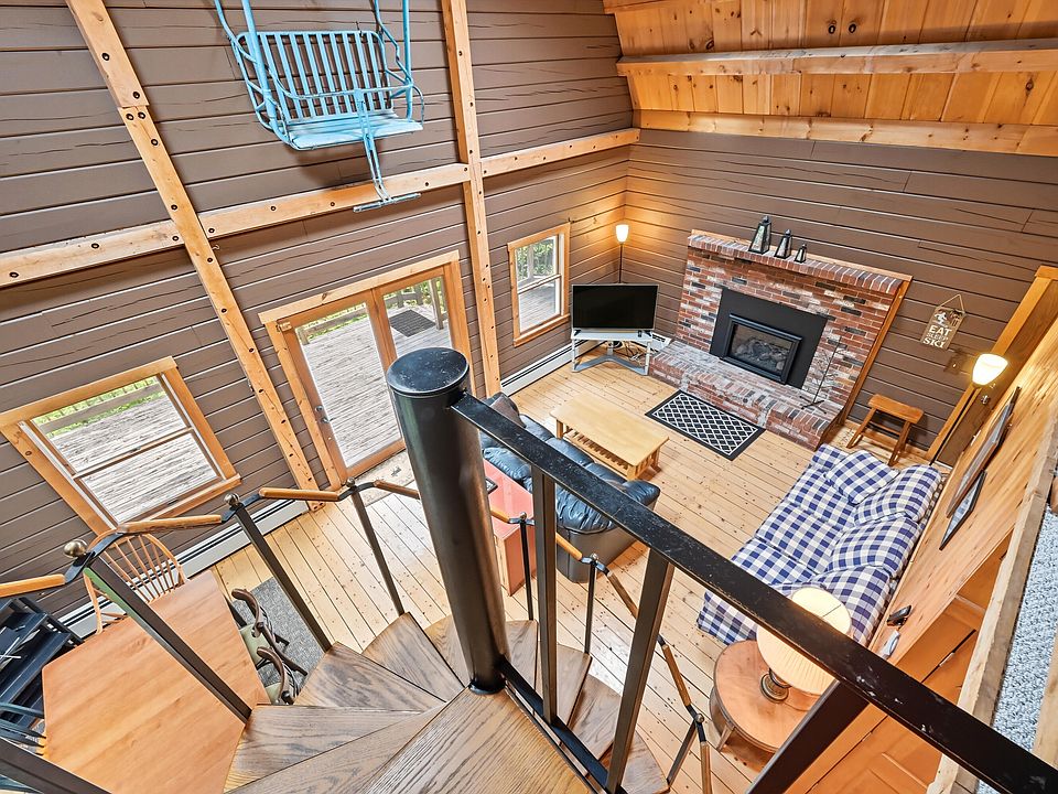Ski chairLarge flat lawnSoaring cathedral ceilingsAbuts cross-country ski trailsAiry open feelOpen-concept designBright expansive dining area