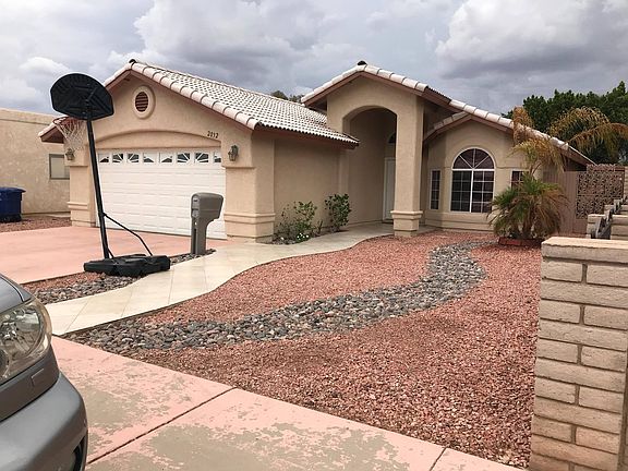 GREAT LOCATION. Home built in 2002. Vaulted ceilings, plant ledges, 3 carpeted bedrooms, the rest has tile flooring. 2 baths with skylites, kitchen with tile countertops. TV room with entertainment center. Ceiling fans. Nice large porch along the back of the house, double gates for 8th Ave entrance. The stainless steel fridge, reverse osmosis, water softener, storage and play house to stay with no warranties.