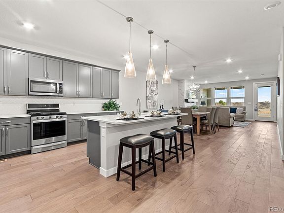 Welcome Home to Effortless Living in The Canyons! Discover this beautifully upgraded home nestled on a private lot and just a short walk to the community lake. This is low-maintenance living at its finest. Inside, you’ll find an open floor plan with a large kitchen anchored with a large island, designer lighting, luxury flooring, and stunning quartz countertops. The full basement with rough-in plumbing offers endless possibilities to expand your living space — create a home theater, gym, or guest suite. Step outside to your covered patio, the perfect place to relax and enjoy quiet evenings or morning coffee with a view. Living in The Canyons means enjoying a vibrant lifestyle with resort-style amenities — a sparkling pool, clubhouse, on-site restaurant, pickleball courts, and even a cozy neighborhood coffee house. This home truly offers the best of Colorado living — easy, elegant, and connected to everything you love. Schedule your showing soon, this home is a gem!