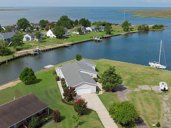 **Location, Location, Location!** This amazing waterfront home offers panoramic bay views and stunning sunset events each night from your private deck. Enjoy easy access to Chesapeake Bay with a launch boat ramp just around the corner, and keep your boat in your deep-water backyard. This spacious residence features three bedrooms, four bathrooms, an office, a dining room, a living room, and an eat-in kitchen, all highlighted by an enormous 22x22 great room. Well-maintained, this home boasts over 150 feet of new bulkheading (7YO), making it perfect for waterfront living. Life is wonderful in the popular seaside Schooner Bay community, located just 10 minutes from downtown Onancock, where you can find restaurants, shops, and theaters. 20 Minutes to Riverside hospital and medical offices.
