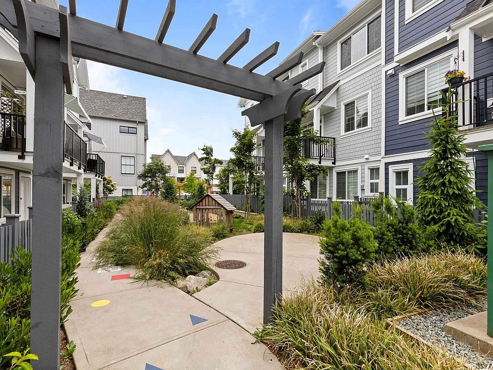 Welcome to Skylark at Latimer Heights! This stunning 4-bedroom, 4-bathroom townhome offers over 1,800 sq. ft. of contemporary living in one of Langley's most vibrant communities. Only 3 years old, this home features 10' ceilings, a spacious open-concept layout, large kitchen island with open shelving, energy-efficient stainless steel appliances, smart home systems, triple-pane windows, solar, and a tankless hot water system. Enjoy your morning coffee on the private covered deck overlooking mature trees. Forced air heating with A/C ensures year-round comfort. Located within walking distance to RE Mountain Secondary, Willoughby Elementary, Yorkson Creek Middle, parks, Willoughby Community Centre, and transit. Double car garage. A boutique community of just 50 homes-don't miss this one!