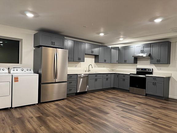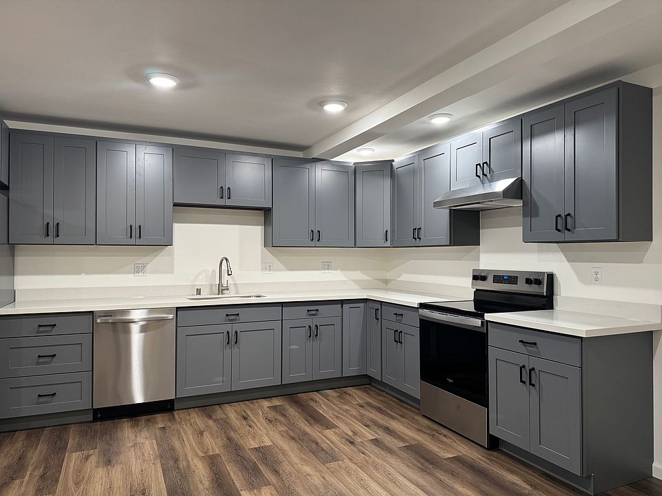 Freshly painted basement with separate entrance and features all brand-new flooring and appliances