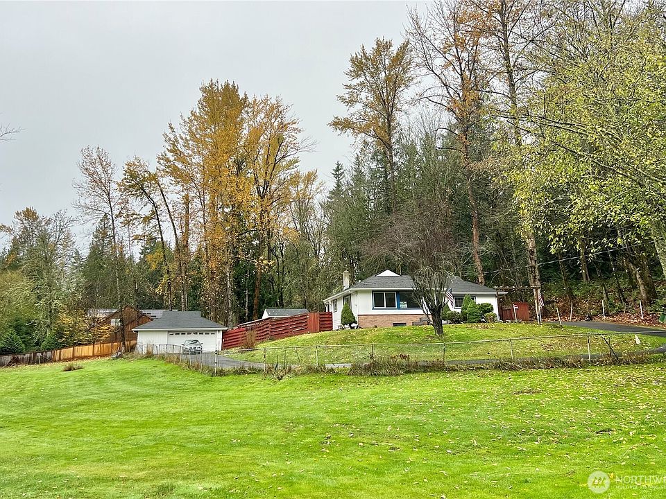Located in a beautiful green, southern facing bright area within the city of Sammamish, this 1.14 acre mini farm is a nature lovers paradise. With large garden spaces, a large grass pasture, a four stall dog/chicken kennel, a equestrian or farm animal/goat shelter, and abundant trees all around, this single-story home with basement is a unique blend of old world farm charm with modern comfort upgrades. Enjoy deer, migrating birds, and frogs in the seasonal stream on neighboring property. Outside, the home sits at the top of the lot facing south and is bright even on cloudy days. 250+ feet of asphalt gives access to the detached garage and front of home. Inside, new flooring and paint highlight this spacious updated 3 bedroom home.