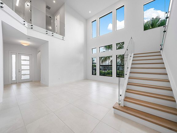 Custom lightingStriking glass railed staircaseBeautifully upgraded flooringPremium lake lotOversized corner lotModern architectural statementGrand entrance
