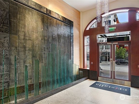 New price on this pristine one bedroom plus den Cristalla Residence a short stroll from the Waterfront, shopping, entertainment, light rail, and the epicurean paradise of Pike Place Market, just a few blocks from the bustling World class business center of South Lake Union. Hardwood floors, office space, and floor to ceiling windows to access your expansive private deck. 24-hour concierge services and one of the best amenity offerings in the city: gym, sauna, Jacuzzi, steam room, and a rooftop terrace and owner's lounge with a special corner for pets! Electric car charging available too. Enjoy the best lifestyle Seattle has to offer all in one convenient location!