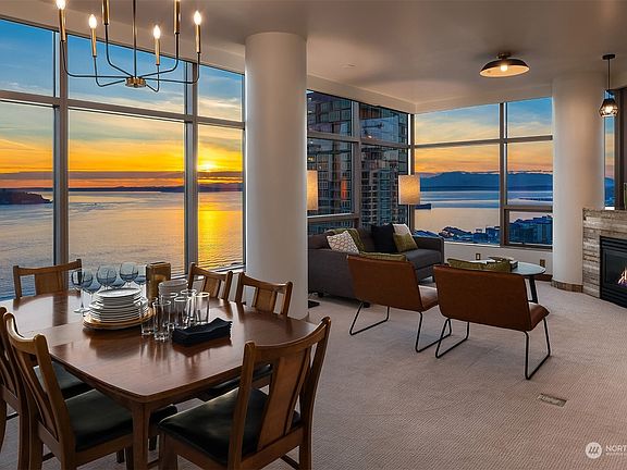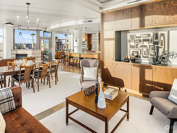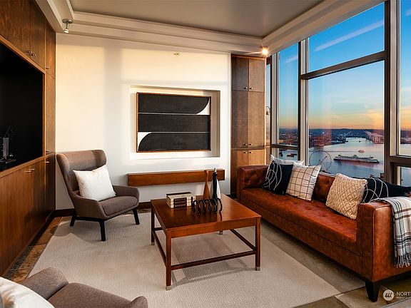 Discover the epitome of luxury living in this exquisite Cristalla end unit condo with breathtaking Puget Sound views. Exotic hardwoods and stone create a stunning interior in this northwest corner unit. Burl inlaid casework, terrazzo floors and a serene earth tone palette infuse tranquility. Dual primary suites with spa-like baths, two view decks and a gourmet kitchen with Wolf and SubZero appliances. Building Amenities include a rooftop deck, sky lounge, 24/7 concierge, gym, pet facilities, hot tub/sauna/steam, theater & meeting rooms. Unit includes two parking spaces and two storage spaces. Immerse yourself in serenity and sophistication in one of Seattle's most respected condo buildings.