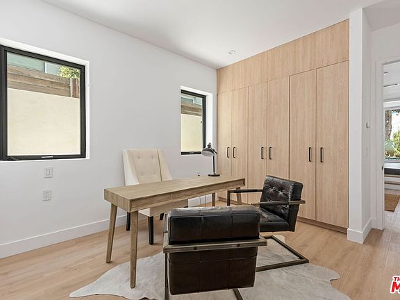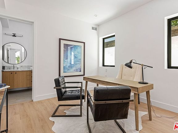 Welcome to this stunning architectural gem in prime West Los Angeles, nestled on a picturesque tree-lined street in the Sawtelle District. Designed by renowned architect Bill Bernstein, this 3-bedroom, 3.5-bathroom home redefines luxury living with impeccable attention to detail. Gated for privacy, the home offers a 2-car garage with direct access to the ground floor. Upon entering, you're greeted by a gracious entry and sitting area, setting the tone for the elegance that awaits. The ground floor features a flexible bedroom suite, perfect for a guest room or home office. On the second floor, you'll find a seamless open-concept layout. The great room encompasses a gourmet kitchen with an oversized center island / eating bar, a stylish dining area, and a living room with fireplace. Expansive Fleetwood sliding glass doors open onto a wraparound balcony, offering an indoor-outdoor flow for entertaining or relaxing, and the prefect blend of luxury and comfort. The upper level features an elegant primary suite with a spa-like bathroom, including a separate tub and steam shower for ultimate relaxation. Adjacent to the primary suite is a street facing corner bedroom with its own private balcony with city views, providing a serene retreat. The rooftop deck, equipped with an outdoor kitchen and breathtaking 360-degree city and mountain views, is perfect for al fresco dining, weekend barbecues or just lounging in the sun. Additional amenities include a convenient second floor laundry room, multi-zone HVAC, an alarm system, and a wine refrigerator, enhancing both functionality and luxury. Ideally located near the vibrant shops and acclaimed restaurants of Sawtelle and Century City, this home is also just a short drive from UCLA and other sought-after Westside neighborhoods. This is a rare opportunity to live in a virtually new residence of unparalleled design.