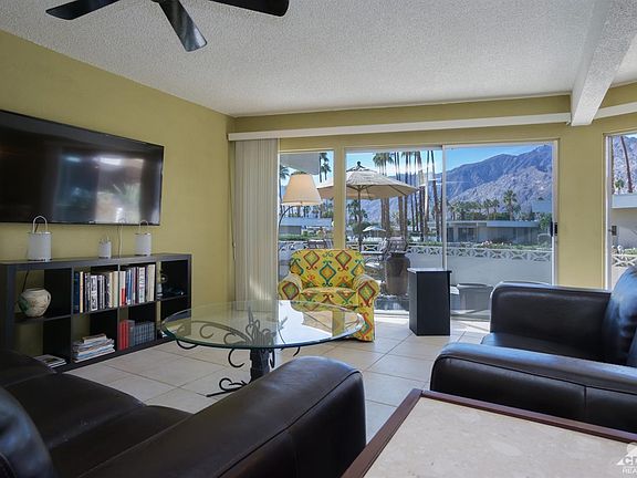 Amazing view - The best of the best can be yours. Two bed Two Bath with atrium space - mid century style in this popular complex. Great location mere minutes from everything in Palm Springs. It does not get more central than this. Kitchen was remodeled with new cabinets and granite tile counter tops. Floors are 100 percent tile. Large closets, large patio and that view! Beautiful single level complex of just thirty units. Walk to dining and shopping, the library the stadium and the senior center. So convenient. Hurry to see this one, these condos rarely last on the market.