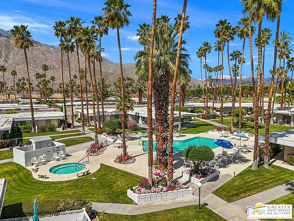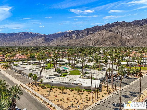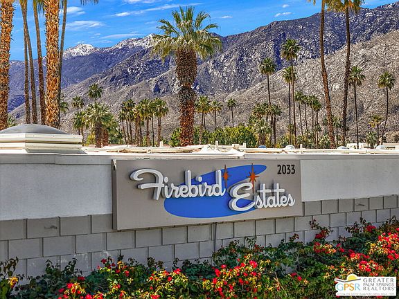 REIMAGINED & MODERNIST! Born in 1964, yet flawlessly updated for 2024 following a carefully curated down-to-the-studs stellar RENOVATION. Patios frame this quintessential Palm Springs pied-d-terre and deliver indoor-outdoor flow in the best possible way. For those who know Firebird Estates, this unique opportunity grows more enticing because of its mid-century backdrop, exceptional resort-style pool + spa, and, of course, a sought-after proximity to the best of town. And then there's the wonderful absence of iron gates around the pool! Visually speaking, this does wonders. Heading back inside, the stylish island-centered kitchen takes full advantage of adjacent patio and mountain views. You'll find sliders open things up beautifully and porcelain tile works its magic underfoot. Wet bar and built-in beverage fridge play nicely in the living room. Same for the FABULOUS new 14-foot glass slider between the courtyard and living room. This "opening up" of the courtyard to the main living areas is a unique feature, unmatched by other homes at Firebird Estates. Ensuite bedrooms continue a theme of "attention to detail." The Primary features direct patio access and a tiled bath, ever so lovely in blue. The shower takes center stage. You'll find heated floors in the bathrooms as well. Take the Matterport VIRTUAL TOUR for a better sense of flow. Notable upgrades include plumbing and electrical improvements, landscape lighting, drip system, and soundproofing of walls. Natural gas lines connect to a barbecue and fire pit on the patios. Yet another worthwhile mention, this home's successful seasonal rental history. No surprise considering all the updates and the incredible backdrop. Enjoy it all!