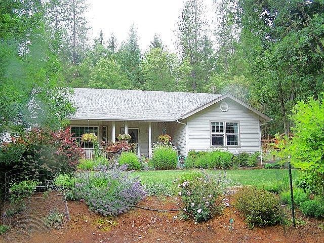 Hidden back in the oak trees, you can't help feel the tranquility of this 4.88 parcel. Gated entry with split rail fence, guide you to the cascading water fall with picnic area and hamocks in the trees. Walking paths with beautiful flowers and shrubbery meandor to garden benches, fenced garden area and the chicken condo's. The Jacoby home was built in 2002 and custom kitchen was upgraded with granite counter tops and tile flooring in kitchen/dining and bathrooms in 2005. You can cozy up to the wood stove on those cold winter days and nights. Home offers nice open floor plan with ample windows to enjoy the front deck and flower lined patio in the back. In addition to attached two car garage, there is a 30 X 35 detached shop for storage or hobbies. This entire package will capture your heart.