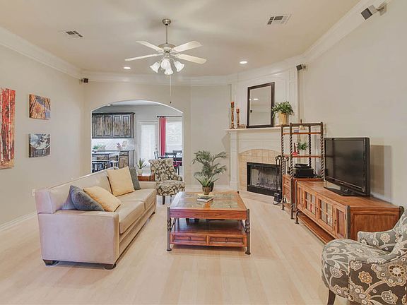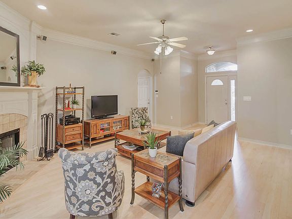 Located in desirable Castlegate subdivision and south College Station, this Crowley built home welcomes you from the entryway into the spacious living room with wonderful hardwood floors, soaring ceilings, crown molding and a gorgeous wood burning fireplace. Open to the living room and dining room, the kitchen features a large granite island, tile backsplash and walk-in pantry. The split bedroom floorplan provides privacy for the master suite that includes dual sinks, large walk-in shower and a jetted tub. Step out on the extended covered patio and deck overlooking the beautifully landscaped backyard.