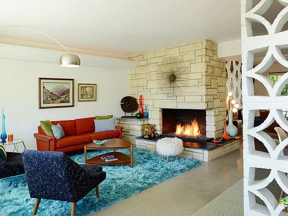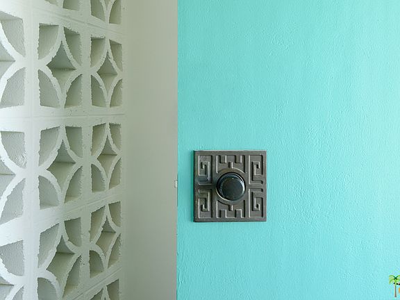 Custom built in 1960 by a prominent Palm Springs family, this home has lots of period architectural details that are sure to delight a mid century enthusiast. A screen block wall shields the living room entry where a large limestone fireplace dominates the space and a coved ceiling provides diffused lighting in the evening. The dining room is at the center of the house where light pours in from all sides through large windows. The open kitchen mixes new and vintage finishes and leads out to a private yard with outdoor dining area and fire pit for those cooler desert evenings. The home features essentially two master bedrooms. One is unique for the large walk in closet, dressing area and spacious ensuite bath. The other has a private entry. Both have wonderful views to protected yards. An additional guest room has views to the pool area which features a large covered patio and outdoor shower. The exterior is finished in combed stucco and architectural brick. Detached garage.