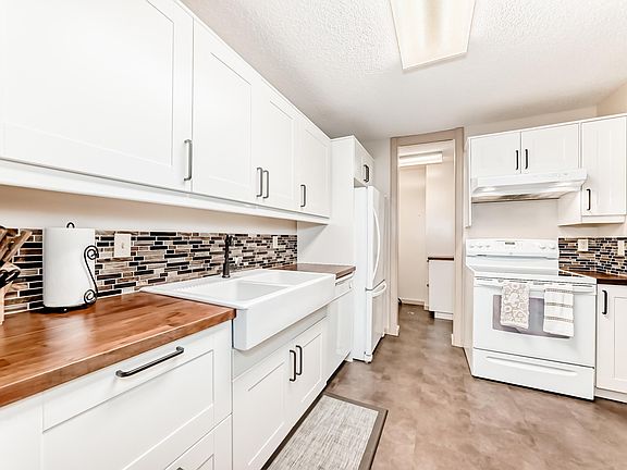 Spacious 3-bedroom main floor END UNIT in the quiet Skyrattler community. This updated home features a private entrance, covered patio, and extra windows that bring in natural light and offer a peaceful view of green space. Inside, enjoy a cozy wood-burning fireplace in the living area, and a renovated kitchen with white cabinetry, butcher block counters, a large sink, built-in dishwasher, and a WALK-IN pantry. The generous primary bedroom includes a WALK-IN closet and direct access to the updated 4-pc bathroom. Two additional bedrooms provide flexibility for guests, kids, or a home office. Other highlights include in-suite laundry, a storage room, and one assigned parking stall. A well-managed community, just steps to transit, LRT, Century Park, shopping, YMCA and TRAILS OF BLACKMUD CREEK. Easy access to Southgate, U of A & Anthony Henday.