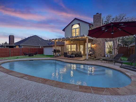 This magnificent home near Mesquite is the perfect accommodation for your trip to the Dallas-metroplex area. With a modern yet cozy vibe, this 4-bedroom, 2.5-bathroom home offers everything you need for a festive getaway. Enjoy quality time with friends in the man cave poker room or unwind in the incredible backyard, featuring a refreshing pool for fun and relaxation. The gorgeous patio area provides the ultimate spot to relax and enjoy your vacation. Spanning 2400 sqft, this home offers plenty of space for your family and friends to create lasting memories. Located in a quiet neighborhood close to shopping centers and highways, it's the perfect place to retreat after exploring the vibrant Dallas area.