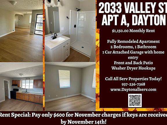 This 823 square foot apartment home has 2 bedrooms and 1.0 bathrooms. This home is located at 2033 Valley St #A, Dayton, OH 45404.