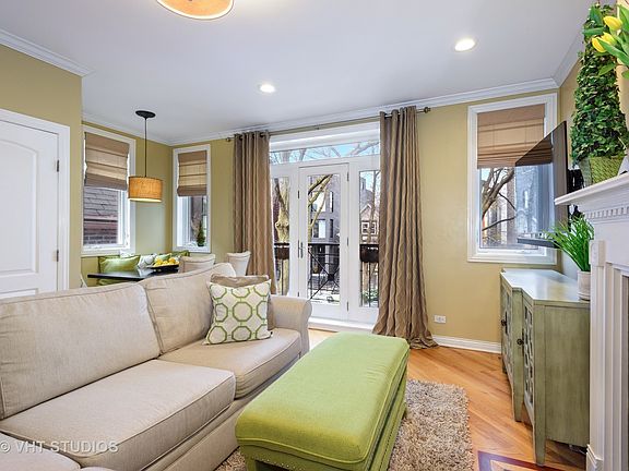 Fantastic home, terrific finishes, and amazing neighborhood! What more could you ask for? Welcome to this bright and airy 2 bedroom, 2 bath condo in the heart of highly desired Ukrainian Village! A beautiful brick facade greets you as you enter the building. The home itself has floor-to-ceiling windows drenching the entire main living area in natural light. Very large Kitchen with shaker style wood cabinets, granite counters, stainless appliances plus a wine fridge and a massive breakfast bar. Generous-sized living and dining room with gleaming hardwood floors, attractive lighting, a gas fireplace and an amazing custom built in dining banquette. This attractive and very thoughtful banquette is an extremely great use of space, allowing for more room in actual living room plus tons of additional storage below the seats! Large master bedroom features a full a walk in closet and en-suite bath with jet tub and shower, plus a dual vanity sink. Generous sized second bedroom with ample closet space and 2nd bath with marble topped vanity and tub/shower surround. Spacious private deck that is accessible from hallway or master bedroom. Very good storage in unit, plus washer dryer, covered parking and separate storage room in lower level. Unbeatable location on a tree lined street right off Damen; just steps from all the endless dining, nightlife and entertainment options Chicago Ave & Division St have to offer. This one truly has it all!