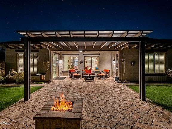 Enter into your stylish and open master suite with beautiful mountain views and access outdoors, with wood shutters and an updated ceiling light/fan fixture. The Full Master Bath features separate granite vanities, a soaking tub, a shower, plus a walk-in closet. 3 additional bedrooms, a full bathroom plus a powder room provide plenty of interior living space. Custom shelving added in the garage to keep you organized. Embrace Arizona's year-round climate with your custom pergola, fire pit area, and a covered patio, perfect for dining outdoors or relaxing for the evening by the fire. Enjoy the community center with a heated lap pool, fitness center & classes, hot tub & sauna, rock climbing wall, tennis & basketball courts and with the Sonoran Preserve/Desert Vista Trailhead right down the street, you'll enjoy over 14 ml. of hiking trails. There truly is nothing to do except move in and live your absolute best life. Neighborhood mountain views, close proximity to I-17 and 303 freeway access, 15 minutes to TSMC, shopping, dining, entertainment, health care, and 30 min. away from beautiful Lake Pleasant Regional Park.