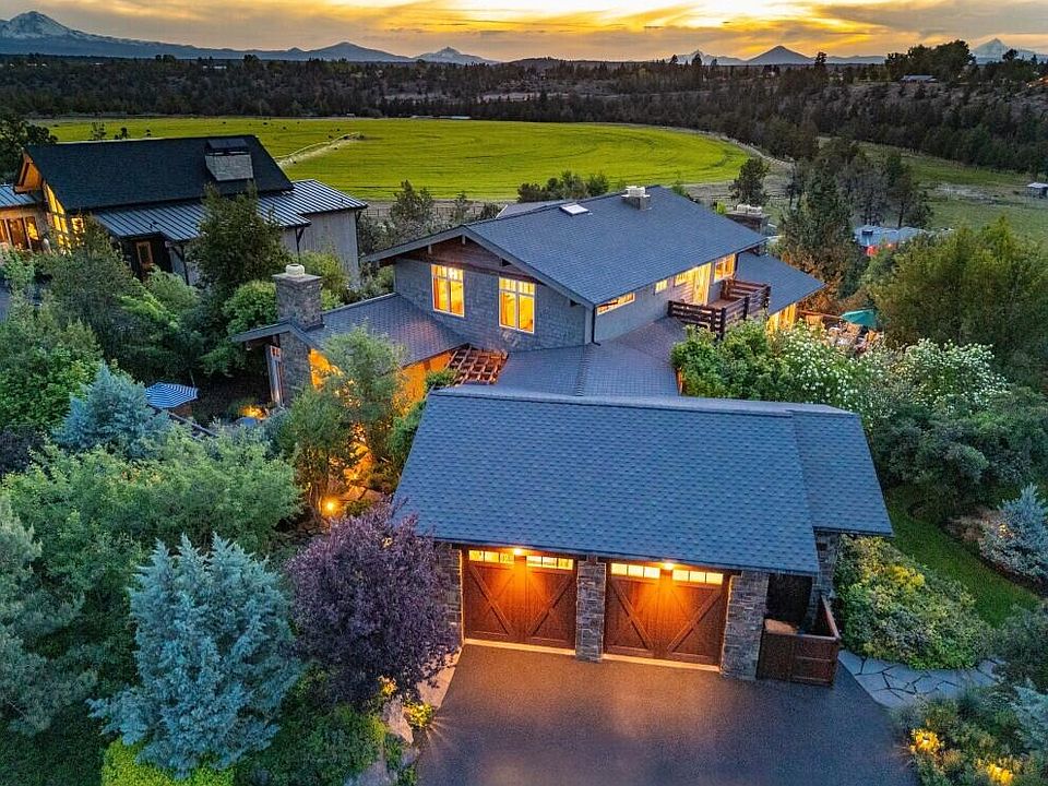 Experience the pinnacle of Central Oregon living! Discover luxury and tranquility seamlessly converging in this 4-bedroom, 3.5-bathroom home spanning 4,802 sq. ft. with ample space for both solitude and socializing. Enviable Cascade Mountain and pastoral views await! The spacious .56-acre lot features multiple outdoor living areas, enhanced by mature landscaping and a water feature. Unparalleled craftsmanship and quality are evident throughout. The chef's kitchen offers honed granite countertops, high end appliances and custom cabinetry. The main level includes a family room, formal living and dining areas, office, and powder bath, while the upper floor hosts a luxurious primary suite with a spa-like bathroom and balcony, along with 2 guest rooms. The daylight basement adds versatility with a 4th bedroom, media room, and kitchenette. Deschutes River Ranch owners enjoy private river access, trails and endless outdoor recreation just 10 minutes from downtown Bend. Live the good life!