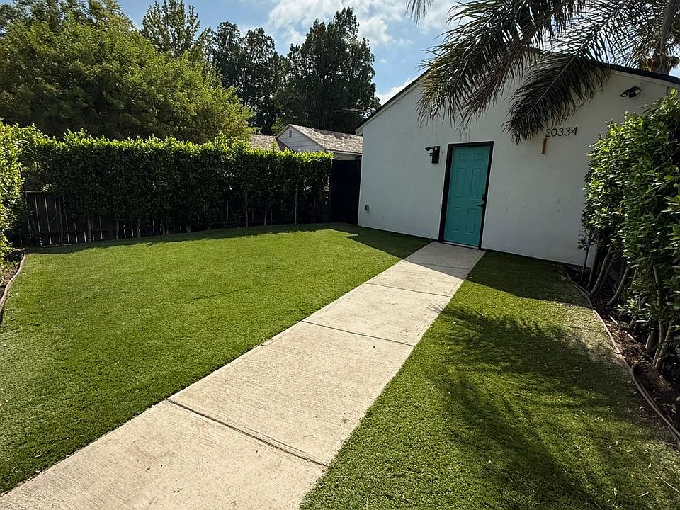 A renovated guest house, with a beautiful kitchen with stainless-steel appliances and a LARGE manicured turf backyard with a private entrance!