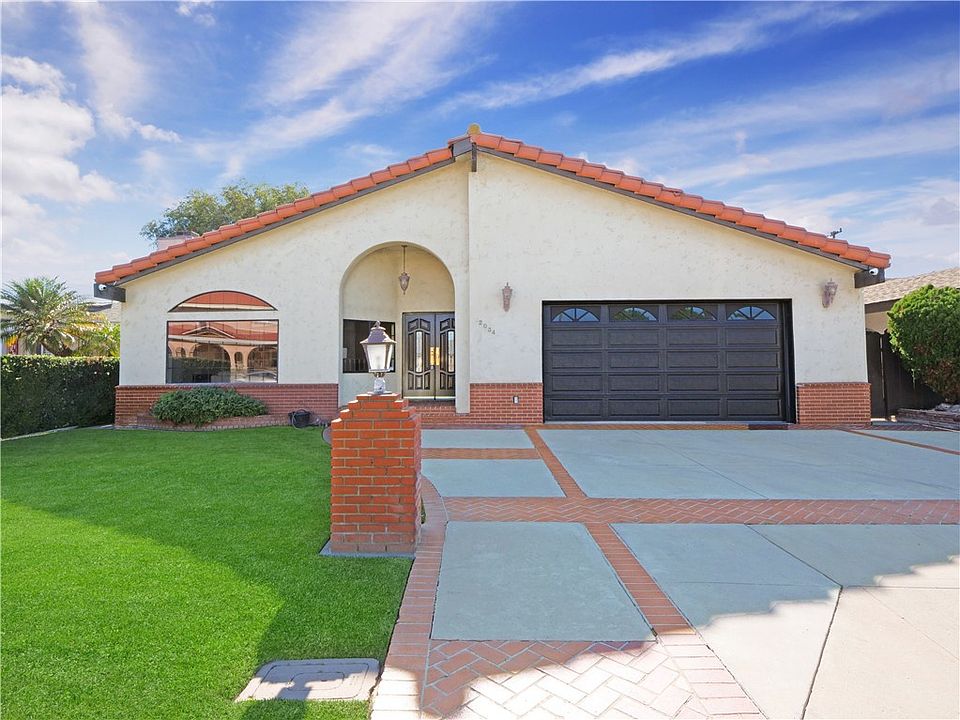 Elegant Spanish-style residence nestled on a tranquil cul-de-sac street. This stunning home boasts spacious living areas, including a large living room, dining area, and family room—all adorned with vaulted ceilings, creating an airy and inviting atmosphere. The gourmet kitchen is a culinary haven, with granite counters, marble backsplashes. Featuring three bedrooms and three baths, there's ample space for comfortable living. The master bedroom is extra-large with vaulted ceilings and walk-in closet with safe. The home was recently painted throughout and has new flooring. This home seamlessly blends modern comfort with timeless charm. Welcome to your new haven of style and sophistication.