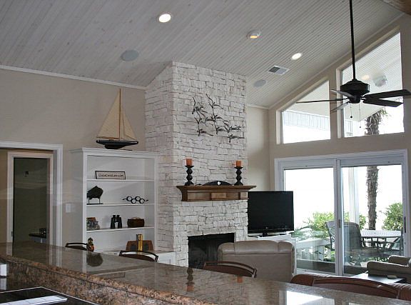 GB-6712. UPSCALE LAKE HOUSE ON INCREDIBLE OPEN WATER - WATERFRONT OWNERSHIP ON TWO SIDES OF LAKE - VAULTED WOOD CEILINGS - SOLID WALL OF WINDOWS, HAND-SCRAPED WOOD FLOORS, STONE FIREPLACE, PAINTED KITCHEN CABINETRY, GRANITE COUNTERTOPS, LARGE EATING BAR - SPLIT BR ARRANGEMENT, COVERED PORCH, WOOD DECK & SEATING AT WATERS EDGE - LARGE SUN DECK/PIER ON OPEN WATER, LARGE DOUBLE BOATHOUSE W/SUN DECK & PARTY ROOM LOCATED ON DEEP WATER, PROTECTED COVE - WROUGHT IRON FENCE, BEAUTIFUL LANDSCAPING - UNIQUE PROPERTY!