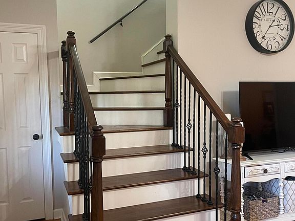 This spacious two-story home includes a main downstairs bedroom with an attached bath. Two secondary bedrooms are located upstairs with a bath and bonus room in between which can be used as a playroom, game room, media room or even an office. Both upstairs bedrooms have double closets, walk-ins with built in shelving and built in desks, while still being spacious enough for a full size bed and/or two twin beds. The upstairs bonus room and one of the bedrooms both offer walk-in access to two separate attic storage areas. An additional bonus room downstairs is currently being used as an additional playroom, office area and homeschool room but the possibilities are endless for this flex space! The beautiful powder room is located under the stairway. Did I mention the beautiful wooden staircase with metal spindles is a beautiful focal point of the living room?
