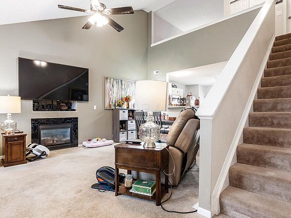 Well-maintained 2 bedroom, 2.5 bath freestanding condo featuring an open floor plan with spacious living, dining, and kitchen areas. The great room offers a gas log fireplace. First-floor primary suite includes a walk-in closet and private bath. Additional main-level features include a laundry room and half bath. The second floor offers a loft area, perfect for an office or additional living space, along with a second bedroom and full bath. Two-car attached garage. Low-maintenance living conveniently location with easy access to shopping, dining, and major routes.