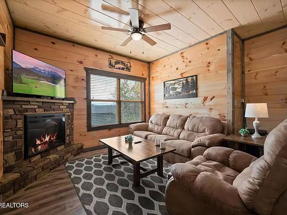 Projections up to $90,000 Gross Revenue!! TURN KEY moneymaker in EAGLE SPRINGS RESORT with community pool, pavilion and more! Welcome to ''Moonwalking Bear,'' a recently built cabin with HUGE DECKS overlooking Bluff Mountain in the scenic Smoky Mountains! Easy accesss with no steep roads and plenty of parking! Currently sleeps 8 with space to add more for increased revenue. Nestled in the woods, this modern spacious retreat offers a perfect blend of comfort and nature. Highly rated on AirBnb! Cozy up by the fireplace, enjoy family time in the awesome GAME ROOM, or relax in the private HOT TUB. Conveniently located close to the Parkway and attractions, it's an ideal base for exploring. With activities for the whole family, ''Moonwalking Bear'' promises a memorable mountain getaway! Schedule your showing today! ATTENTION HOME BUYERS: This Certified Pre-Owned Home comes loaded with EXCLUSIVE benefits — including a 12-month home warranty, our Buy Back Guarantee, and thousands in built-in savings! Buy with confidence knowing your purchase is backed by our satisfaction guarantee. Enjoy a stress-free move and peace of mind that few homes can offer. Schedule your private showing today!