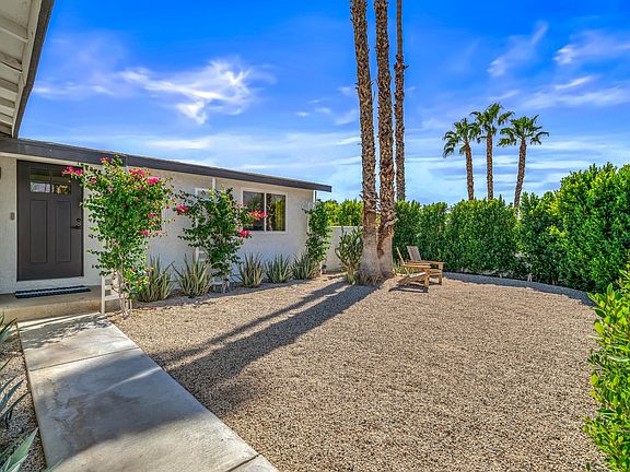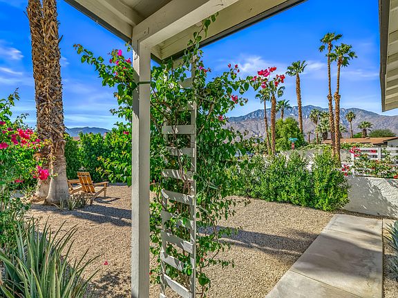 Charming Palm Springs retreat with views you dream about--or only find on a postcard.This stylish 3-bedroom, 2-bath contemporary bungalow sits on a prime corner lot along a quiet cul-de-sac, offering privacy, character, and unobstructed panoramic views of Mt. San Jacinto and the surrounding desert. From sunrise to sunset, this home captures the timeless beauty and serenity that make Palm Springs so special. Inside, the light-filled open floor plan perfectly balances warmth and sophistication. The updated kitchen features stainless steel appliances, sleek cabinetry with modern hardware, handmade Moroccan tile backsplash, and reclaimed wood shelving--a tasteful blend of craftsmanship and contemporary design. Both bathrooms are newly remodeled with custom vanities, tile walk-in showers, and decorative lighting. Additional upgrades include luxury vinyl flooring, dual-pane windows and sliders, new copper plumbing, a tankless water heater, and an Ecobee smart thermostat, providing comfort and energy efficiency throughout. Step outside to your private backyard sanctuary featuring a brand-new pool with tanning shelf, new concrete decking, lush desert landscaping with a new irrigation system, and an oversized covered pergola--an entertainer's dream or a tranquil retreat beneath the stars. Every evening delivers an unforgettable show of sunset color and mountain silhouettes, framing your own personal desert paradise. This home offers the perfect blend of charm, comfort, and location--ideal as a full-time residence, weekend escape, or vacation rental opportunity. Conveniently close to the CV Link, Steel Gym, Palm Springs International Airport, and less than 10 minutes to Downtown Palm Springs, shopping, dining, museums, and the vibrant Arenas District nightlife. Best of all, this property is out of the flight path, ensuring peaceful enjoyment day and night. A rare opportunity to own a home as beautiful as its setting--perfectly sized for full-time living or a weekend getaway, where every day feels like a postcard from Palm Springs.