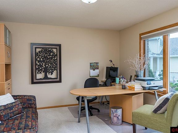 This spacious home on Sundance Lane offers plenty of bedrooms, plenty of space to home office & entertain, and plenty of space to relax outdoors. The 2-story layout features a main-floor master suite, 3 bedrooms on the 2nd level, and 2 more bedrooms downstairs. The main floor opens with a pair of offices on each side and a sunny, vaulted great room straight ahead. Transom windows flank the built-in fireplace and let in tons of light. The dining room leads to the large kitchen that features Cambria countertops, new backsplash, stainless steel appliances, corner pantry and center island with tons of storage and workspace. Leading to the 3-stall garage is a powder room, coat closet, and laundry. The master suite has soaring ceilings, tall windows, a patio door to the backyard, walk-in closet, and large bath with soaker tub and separate shower. Downstairs is a large (44' x 14'!) family room with recessed lights, great for cozy nights in. There is a storage room, mechanical room, full bath and two large bedrooms also downstairs. Every bedroom in this home has a walk-in closet. Additional features: in-home audio in main & lower level, HE A/C '20, fresh paint throughout much of the home, large deck and patio, permanent edging around the landscaping. Located in a quiet cul-de-sac, this location can't be beat. Call now for a private showing!