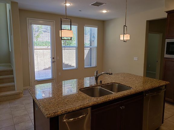 Available for move in now. SORRY NO PETS ALLOWED. Refrigerator, washer, and dryer not included. ONE OF THE LARGEST MODELS IN THE GUARD GATED ALDEA COMMUNITY. THIS HOME IS AN END UNIT SO IT SHOWS BRIGHT ALONG WITH HAVING A LARGE PATIO AND PLENTY OF STORAGE SPACE. 4 BEDROOMS AND 3 BATHROOMS (1 BEDROOM & 1 BATHROOM DOWNSTAIRS). THIS HOME FEATURES AN OPEN LAYOUT WITH UPGRADES THROUGHOUT THE HOME. RECESSED LIGHTING, UPGRADED KITCHEN BACK SPLASH, BEAUTIFUL GRANITE, KITCHEN ISLAND, TILED AND BERBER CARPET FLOORING, LAUNDRY HOOK-UPS, AND 2 CAR ATTACHED GARAGE. THIS COMMUNITY ALSO OFFERS A RECREATION CENTER WITH BBQ AREA, A LARGE RESORT STYLE COMMUNITY POOL, AND A CHILDREN'S PLAYGROUND. Tenant pays for water, electricity, trash, sewer, and gas. Landlord requires two months security deposit with good credit and income. Refrigerator, washer, and dryer not included.