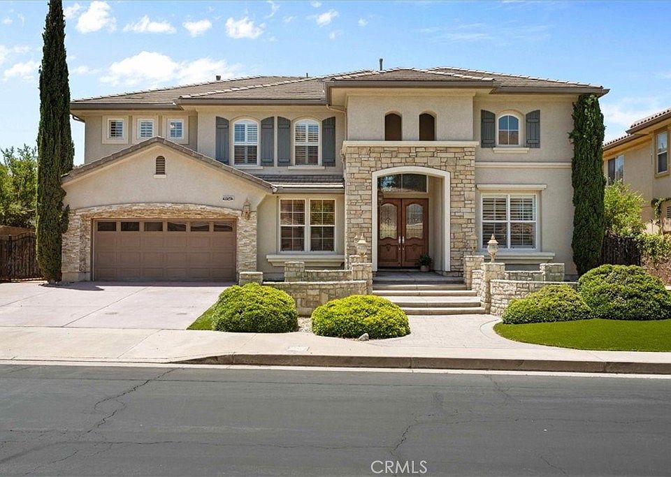 Step into elevated living in the prestigious, guard-gated Renaissance community of Porter Ranch. This sun-drenched 5-bedroom, 5-bathroom residence offers a seamless blend of elegance and functionality, featuring sophisticated finishes, granite countertops, generous storage, and a rare 3-car tandem garage. A built-in central vacuum system adds modern convenience throughout the home, while a brand-new Tesla solar system, fully paid off by close of escrow, offers energy efficiency and long-term savings.