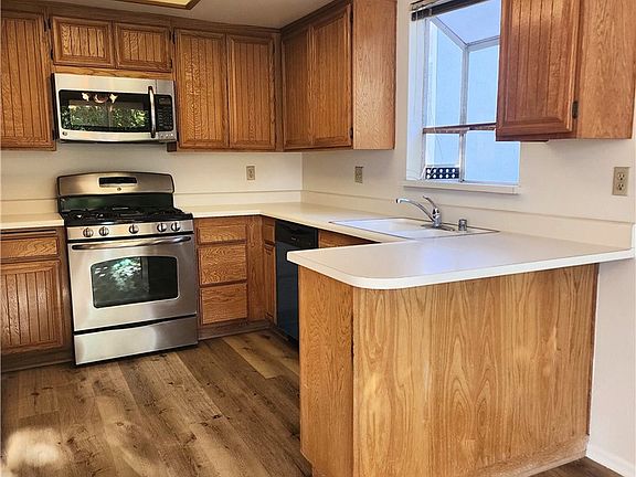 Nothing Left To Do But MOVE IN!! STUNNINGLY REMODELED THROUGHOUT!! So Many Possibilities! Fresh paint and new plank flooring throughout. Smooth ceilings. The open kitchen offers ample counter space and tons of cabinetry, a pantry, garden window, stainless appliances, built in microwave, the Refrigerator is included Plus a new dishwasher. Newer Dual Pane slider leads to the large deck with upgraded, low maintenance 'Trex' decking and a storage closet. Large primary bedroom with dual closets and a full bath. Convenient laundry closet located in the hallway with a stack washer & dryer that's also included. Spacious two car tandem garage with a newer roll up garage door & opener, allows additional space for storage.