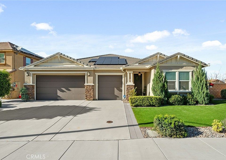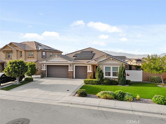 Once upon a time— beyond rolling hills and beneath endless skies, a fairy tale home really does exist! Alas you must act before the clock strikes midnight! This rare 4 Bedroom 3 Bath Single-Story retreat with Stunning Pool and Spectacular Views … is sure to get scooped up immediately! Especially with NO HOA to tell you how your fairytale ends! High ceilings lift your gaze the moment you enter, setting the tone for a home that feels both grand and welcoming. With four bedrooms and three bathrooms, this thoughtfully designed residence offers space to retreat. Just off the entry, a private fourth bedroom with an adjacent walk-in shower bath creates the perfect haven for guests or in-laws—quietly tucked away, yet beautifully connected. At the heart of the home, the kitchen is a true showpiece: a generous center island adorned with a custom backsplash, ready for morning coffee rituals or evening celebrations. Thoughtfully designed with an open concept to the luxurious living room and dining area with custom accent walls. Nearby, a versatile theatre/den awaits—perfect for movie nights, a creative studio, or whatever chapter your story calls for next. The laundry room is equally refined, featuring ample cabinetry and counter space designed for both function and grace. The primary suite feels like a personal sanctuary, complete with an attached bath and a sense of calm that invites rest and renewal. Two additional bedrooms and a full bathroom provide comfort and flexibility for family or guests alike. Step outside, and the magic deepens. A covered patio with dual ceiling fans overlooks a sparkling saltwater play pool—heated, pebble-finished, and crowned with three cascading waterfalls. Designed with shallow ends, a built-in bench seat, and a Baja shelf for sun-soaked afternoons, it’s a setting worthy of golden hours and unforgettable evenings. Impeccably landscaped with low-maintenance, water-wise design and lush synthetic grass, the grounds are as efficient as they are beautiful. Solar panels with a Tesla backup battery ensures modern sustainability, seamlessly woven into the fairytale. From the front, rolling hills stretch like a painted backdrop; from the back, sunsets melt into mountain views, offering scenes that never grow old. Best of all, this enchanting community comes without an HOA—freedom and beauty living side by side. Remeber- your offer gets in before the clock strikes 12. The last two homes with one level a pool and views sold within days!